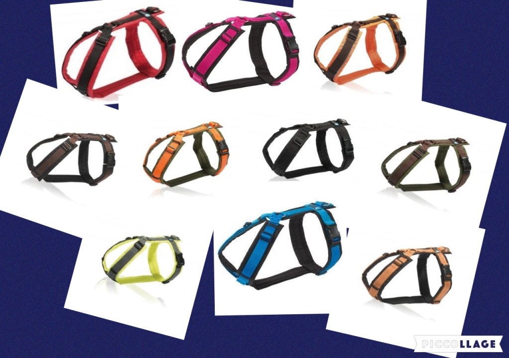 Die Geschirre von Anny x in verschiedenen Farben und Grössen können auch gerne anprobiert werden.
